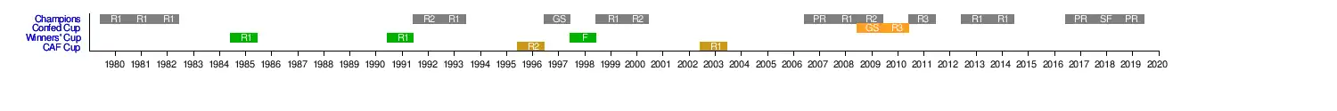 In 1998, the club reached the final of the CAF Cup Winners' Cup, having finished as the runner-up. In 1997 and 2009, they reached the group stage of the CAF Champions League and of the CAF Confederation Cup, respectively.