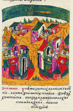 ![]() Woodcut of the Great Comet of 1556 over Istanbul | |