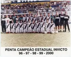 In the 1990s Vasco's women's team enjoyed the patronage of the club's influential director Eurico Miranda and enjoyed sustained success. Coach Helena Pacheco assembled a strong team with several national team players and also set up a thriving residential youth system at the São Januário stadium.[4] When the Campeonato Carioca was re-instated in 1996, Vasco won it five times in succession.[5] They won four national titles (1993, 1994, 1995 and 1998)[6] and in 2000 signed a 14-year-old Marta to their youth team. The entire women's section was disbanded for financial reasons in 2002.[7]