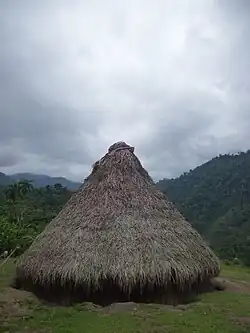 Cabécar villages have houses and other structures are not nucleated around a central location. Instead, dwellings are often dispersed, sometimes a few kilometers apart. The notion of densely nucleated towns or villages was introduced in the region by the Spanish in the colonial era to coerce Talamancan indigenous groups into concentrated settlements, but these attempts were met with resistance. Stone observes that the word for ‘town’ or ‘city’ does not even exist in Bribri or Cabécar languages; instead ‘city’ is represented in Bribri as ‘great place or extension’ and in Cabécar as ‘place of many houses’.[2] Most Cabécar and Bribri villages reflect patterns of dispersed settlement today, an indicator of the geographic isolation of the Talamanca region and of the limited contact these indigenous groups had with the Spanish.