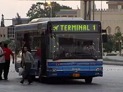 A shuttle bus connects with all the passenger terminals and finally stops at the Cairo Airport Bus Terminal where public buses heading to other destinations in Cairo and connect frequently to major transportation hubs like Abbasia and Tahrir Square/Abdel-Moniem Riad bus terminus.