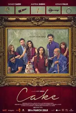 Cake is a Pakistani 2018 romantic comedy-drama mystery film directed by Asim Abbasi.[3] The film is produced by Sayed Zulfikar Abbas Bukhari (Zulfi Bukhari) and is a joint production by Asim Abbasi's United Kingdom-based production company Indus Talkies,[4] and a Pakistani film production company ZAB Films. The film stars Sanam Saeed and Aamina Sheikh as lead characters alongside Adnan Malik in his film debut.[5]
