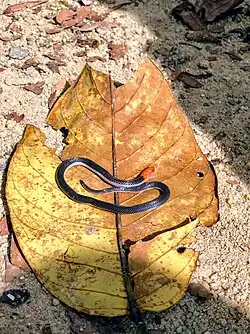Calamaria schlegeli is a species of snake in the family Colubridae.[1][2] The species is known commonly as the red-headed reed snake,[1] white-headed reed snake,[2] and pink-headed reed snake.[3] It is native to Southeast Asia, where it occurs in the Malay Peninsula (Malaysia, Singapore), Borneo (Brunei, Indonesia, Malaysia), and in several Indonesian islands, including Sumatra, Java, Bali.[1]