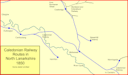 There were considerable mineral resources in South Lanarkshire, and when the Caledonian Railway was unable to fund the building of a railway to serve the collieries, an independent line, the Lesmahagow Railway, was built. It ran south from Motherwell: the present-day junction at Motherwell station is named Lesmahagow Junction.