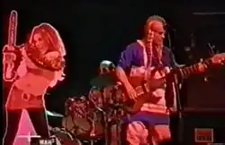 As a result of the concert removals, Mr. Bungle parodied the Red Hot Chili Peppers on Halloween 1999, in Pontiac, Michigan (the home state of Kiedis). Patton introduced each Mr. Bungle band member with the name of one of the Red Hot Chili Peppers, before covering the songs "Give It Away", "Around the World", "Under the Bridge" and "Scar Tissue", with Patton deliberately using incorrect lyrics, such as "Sometimes I feel like I'm on heroin" and "Sometimes I feel like a fucking junkie" on "Under the Bridge".[21] Patton impersonated Kiedis by wearing a blonde wig and speaking with a lisp, and while pretending to be Kiedis, mockingly said to the crowd: "Don't you call me Mike, my name is Anthony. How dare you make that mistake. Mike has been ripping me off for many years."[21] The other members of Mr. Bungle, amidst their on-stage antics, satirized many of the mannerisms of the band and simulated heroin injections, as well as mocking deceased guitarist Hillel Slovak and deceased friend of the band River Phoenix. In between "None of Them Knew They Were Robots" and "The Air-Conditioned Nightmare", Dunn (dressed as Flea) walked up to Spruance (dressed as the ghost of Hillel Slovak) and simulated injecting him with heroin, which Patton interrupted by shouting "You can't shoot up a ghost!".[21]