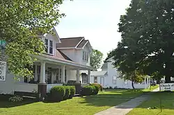 In laying out the town, Mr. Callen reserved three acres for building a Presbyterian Church and cemetery, and deeded an open lot north of Main street, where the town spring was located, to the town. He built his house south of Licking Township, where local legend claimed there was a large poplar tree:[5]