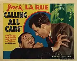 Calling All Cars is a 1935 American crime film directed by Spencer Gordon Bennet and starring Jack La Rue, Lillian Miles and Jack Norton.[1] It was originally made for distribution by Mayfair Pictures, but the company had ceased business by the time of its release.