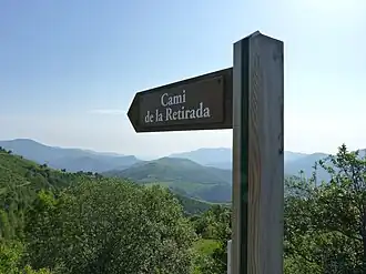 Camí de la Retirada (Catalan: [kəˈmi ðə lə rə.tiˈɾa.də], Spanish: Camino de la Retirada) ("Path of the Retreat") refers to routes and paths in the eastern Pyrenees used by Republican exiles at the end of the Spanish Civil War. One of the best known paths, today signposted as a trail for hiking or biking, runs for 14 kilometres (8.7 mi) from Molló to Prats de Molló via Col d'Ares at 1,513 metres (4,964 ft) above sea level.[1] It is estimated that about 100,000 people of all ages used this path in January and February, 1939.[2]
