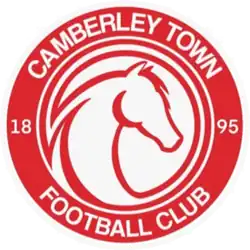 In 1922 Camberley & Yorktown were founder members of the Surrey Senior League.[3] They won three successive titles in 1930–31, 1931–32 and 1932–33 and were runners-up in 1938–39. After World War II the club was renamed Camberley, and were Surrey Senior League runners-up in 1946–47, before winning the league's Charity Cup in 1951–52 with a 4–3 win over Chertsey Town.[4] The club were league runners-up again in 1961–62,[3] and adopted their current name on 2 June 1967 after merging with former Parthenon League club Camberley Wanderers.[4][5] In 1973 they joined the Spartan League, but left to join Division Two of the Athenian League in 1975.[6] In 1977 they switched to Division Two of the Isthmian League, and were promoted to Division One after finishing as Division Two runners-up in 1978–79. Two seasons later they were relegated, and after a single season back in Division Two, they rejoined the Athenian League, which now had a single division.[6]