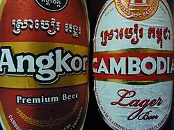 Nowadays, the most popular alcoholic beverage is beer (ប៊ីយេរ, biiyɛɛ).[98] The first domestically brewed beer was produced in the 1930s during the French Indochina period by the Brasseries & Glacières de L'Indochine company in Phnom Penh.[99] In 1995, the annual beer consumption per capita was only around two liters,[100] but by 2004 it began to rise significantly and in 2010 beer overtook spirits as the most popular alcoholic beverage in Cambodia.[98] Currently, the four biggest beer producers in Cambodia are the Cambrew Brewery, Cambodia Brewery, Khmer Brewery and Kingdom Breweries.[101] Recently, there has also been a quickly growing craft beer scene with 12 brewpubs or microbreweries operating in Cambodia in 2019.[102]