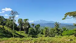 Hikers can begin the route[5] of El Camino de Costa Rica from either the island village of Barra de Parismina[6] or islands in the municipality of Barra de Pacuare. The coast can be accessed during the day from these locations. A short boat ride along canals leading from the Atlantic Ocean delivers hikers to the dock at Goshen, from which the trail continues on the mainland. The route crosses the Nairi-Awari Indigenous Territory, traverses the Pacuare River, enters the valley of Angostura Lagoon, follows a rural road along the edge of Tapantí National Park, descends into the Orosi Valley, and climbs up to its highest altitude of 7,154 feet (2,181 m) in the community of El Empalme. From there the trail weaves through the coffee fields of Tarrazú and the Los Santos Zone down to the city of Quepos on the Pacific coast. The northern volcanoes Turrialba and Irazú can be seen from afar over long stretches of the trail.
