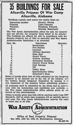 - ^ a b "Aliceville Planning POW Camp Reunion". Tuscaloosa News. August 30, 1995.