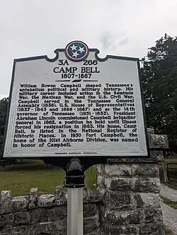 Camp Bell is a historic house in Lebanon, Tennessee, United States. It was built circa 1835 for William Seawell.[2] It was designed in the Greek Revival architectural style. It was later purchased by the Campbell family, whose son, William B. Campbell, became the 14th Governor of Tennessee; he later died in the house.[2] It remained in the family; by the 1982, it was owned by his great-granddaughter, Mary Williamson Thomas.[2] It has been listed on the National Register of Historic Places since April 15, 1982.[3]