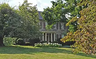 The main house is a two-story structure of coursed rubble limestone. The two-story house is five bays wide. A rear kitchen ell was demolished due to deterioration, but was reconstructed in 1975 in a manner sympathetic to the main house. in 1975. The main block is a center-hall plan, with two rooms to each side of the stair hall. Outbuildings include the store, which retains its original shelving. An 1802 barn completes the ensemble.[2]