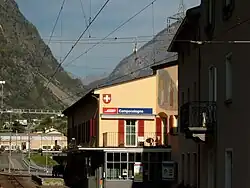 Campocologno railway station is a railway station in the municipality of Brusio, in the Swiss canton of Graubünden. It is located at the border between Italy and Switzerland and is an intermediate stop on the 1,000 mm (3 ft 3+3⁄8 in) metre gauge Bernina line of the Rhaetian Railway.[1] Hourly services operate on this line.