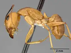 Camponotus fragilis have a yellow complexion with a slightly darker gaster and head.[1][3]