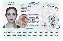 A Canadian passport (French: passeport canadien) is a passport issued to citizens of Canada. It enables the bearer to enter or re-enter Canada freely; travel to and from other countries in accordance with visa requirements; facilitates the process of securing assistance from Canadian consular officials abroad, if necessary; and requests protection for the bearer while abroad.[4][5]