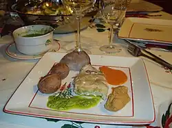 Canarian desserts often use simple ingredients, such as cane sugar, honey, matalahuga or matalauva (anise), almonds and traditional miel de palma (especially on the island of La Palma). Among the desserts are bienmesabe (literally, a contraction of the Spanish phrase that means 'tastes good to me'), which is a paste of almonds, honey and sugar often served with ice cream or cream and cat's tongue cookies.[3] Frangollo is a mix of corn flour, sugar, almonds and raisins, while truchas are pastries (filled with sweet potato paste or cabell d'angel, for instance) that are prepared at Christmastime. Polvito Uruguayo is a layered dessert served in a glass or in standalone cake style. It is made from layers of crumbed biscuits, whipped cream, dulce de leche, ground almonds and ground meringues, with proportions of layers highly variable, and some of the ingredients not always present[4][5].
