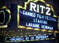 The Canned Film Festival is a comedy-based motion picture television series that was nationally syndicated during the late night hours in the United States for a single season in the summer of 1986. The name is a play on the Cannes Film Festival, the annual world-renowned film-screening celebration in Cannes, France. Not to be confused with the latter, the Canned Film Festival featured B movies as the centerpiece for each television episode, and was composed of short vignettes interwoven throughout the films.[1] Boasting the tagline "late night with the best of the worst", the series was promoted and sponsored by the Dr. Pepper Company, whose then-tagline "out-of-the-ordinary" echoed the show's collection of odd and strange movies.[2][3] The series was created by Young & Rubicam, developed for television by Chelsea Communications,[4] and distributed by LBS Communications.[5]