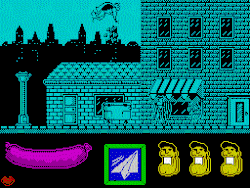 The base version Hi-Score worked with to create Capitán Sevilla was the ZX Spectrum.[7] Due to memory constrains, Tirado stated that tricks were necessary to fit "everything together" and the team decided to make the visuals monochrome except the marker area. [7] Screen scroll was also scrapped in favor of fixed scenes to increase detail for both characters and stage elements.[7] Tirado also implemented a technique based on a comic book guide by José Beá to transpose the hand-drawn artwork from paper into pixel art, in order to process and store graphic information on the computer.[7] Rodríguez stated that the title was "a two-dimensional game with three-dimensional aspects", as there were objects located in a closer plane to achieve a pseudo-3D effect. Rodríguez also stated that the team had to use image masking for objects to make them act "as if it were transparent and the character passed in front of it". "Macedo" Jiménez was in charge of the character animations, focusing on parabolic movements for the flight of the character.[7]