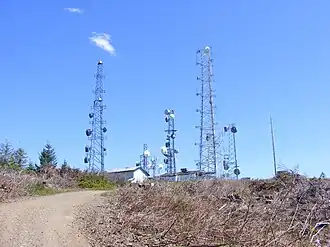 The summit hosts a communications facility that includes an array of cell phone and radio towers. On a clear day, looking to the west is a view of Elma and the Satsop Nuclear Power Plant. Looking to the east is a view of Mount Rainier, Mount St. Helens, and Mount Adams; more to the north are the Puget Sound, and the Olympia area.[7][8]: 80