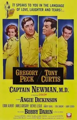 Captain Newman, M.D. is a 1963 American comedy drama film directed by David Miller and starring Gregory Peck, Tony Curtis, Angie Dickinson, Robert Duvall, Eddie Albert and Bobby Darin. The film was co-produced by Peck's Brentwood Productions and Curtis' Reynard Productions.[2]