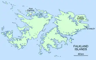 The Capture of Port Egmont on 10 June 1770 was a Spanish expedition that seized the British fort of Port Egmont on the Falkland Islands, garrisoned since 1765.[2] The incident nearly led to war between Great Britain and Spain, known as the Falklands Crisis.[3]