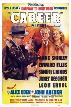 Career is a 1939 American drama film directed by Leigh Jason and starring Anne Shirley, Edward Ellis and Janet Beecher. The screenplay was written by Dalton Trumbo and Bert Granet, with cinematography by Frank Redman.[1] The film was distributed by RKO Radio Pictures.