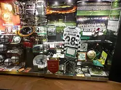His match-winning goal in the second leg against Porto, a 40-yard strike, earned him the inaugural FIFA Puskás Award, presented by FIFA in recognition of the best goal of the year;[90] he later called it the best goal he had ever scored.[91] United advanced to the final in Rome,[92] where he made little impact in United's 2–0 defeat to Barcelona.[93] Ronaldo ended his time in England with nine trophies, as United claimed their third successive league title and a Football League Cup.[94][95] He finished the campaign with 26 goals in all competitions, 16 goals fewer than the previous season, in four more appearances.[96] His final goal for United came on 10 May 2009 with a free kick in the Manchester derby at Old Trafford.[97]