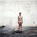 Her series The Swimmers,[6] shows people "in countries and cultures from all over the world, dressed in nothing but their bathing suits. Only the backgrounds are neither beaches, nor oceans [...] Instead, Liesching sets her subjects against abandoned factories, motionless waters, fields of grain and rough urban landscapes. [...] because they've grown up in a world that has changed too quickly and is losing all of its points of reference along the way [...] It's a way of underlining their desire to belong, their need for identity, while they live -- naked -- before the whole world."[7]