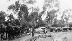 The newly federated nation of Australia was at war when it came into existence on 1 January 1901, with some local men away serving for the British in the Second Anglo-Boer war in South Africa. Locally the failing private railway from Clyde to Pennant Hills had been taken over by the state government. With the latter station renamed Carlingford, the line reopened on 1 August 1901.[39][40]