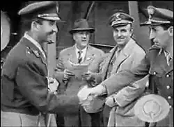 Then Major Delía shaking hands with rival Raimondo D'Inzeo of Italy, ca. 1960 | |