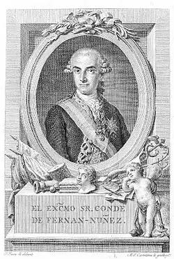 Carlos José Gutiérrez de los Ríos y Rohan-Chabot, 6th Count of Fernán Núñez (11 July 1742 – 23 February 1795) was a Spanish soldier and Diplomat whose military career spanned over two decades. From a noble family, after his military career he served in several diplomatic capacities including Ambassador to Portugal from 1778 to 1788 and Ambassador to France from 1787 to 1791.