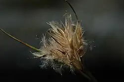Carpha alpina was first described by Robert Brown after he sailed to Tasmania aboard the Lady Nelson in 1803.[5] It has some resemblance to the grasses of the Rytidosperma genus, however, the flat grey-green or red-green leaves, combined with the lack of lemma and palea on the flowers, and the distinctive stipitate nut; differentiate it from those species. [4]