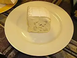 Carré d'Aurillac is a brand of blue cheese owned by the Toulouse based co-operatively owned cheese company Les Fromageries Occitanes. It is an industrially produced blue cheese also sometimes known as Bleu d'Aurillac. The cheese itself is produced at Bedoussac, which is administratively part of the rural commune of Saint-Mamet-la-Salvetat in the French department of Cantal.
