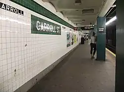 The New York City Subway's Carroll Street and Smith–Ninth Streets stations service the F and G trains.[52][53] Bus service through the neighborhood is available from the B61 on 9th Street and the B57 on Court and Smith Streets.[53]