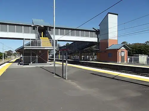 In September 1985, the Queensland Government provided funding to build Carseldine station in the state budget.[2] The station was opened by the Minister for Transport Don Lane in June 1986.[1] Lifts were installed in 1999.[3] On 28 August 2000, a third platform opened as part of the addition of a third track from Northgate to Bald Hills.[4][5]