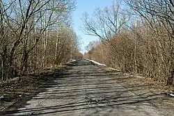 Historically, Carska Droga was originally known as Droga Łomżyńska.[1][11] According to some sources, this name referred to the entire segment connecting all three fortresses (Grodno, Osowiec, and Łomża).[1] However, researcher Bogusław Perzyk limits it to the road linking Osowiec Fortress with Łomża, which local residents called Carska Droga.[11] Similarly, Sergey Khmelkov's writings refer to the road heading south from Osowiec Fortress as Droga Łomżyńska (Russian: Ломжинское шоссе), while the route heading northeast, bombed during the day by German forces, is called the road to Grodno (Russian: шоссе на Гродно).[12]