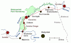 The most interesting section in terms of nature and landscape is from Narew river in Strękowa Góra to Osowiec Fortress, which includes:[8]