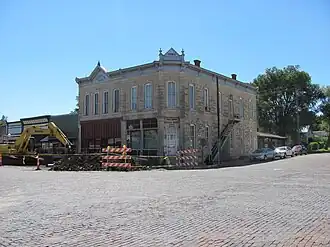 The Cartter Building is a historic commercial building at 303 Broadway in Cottonwood Falls, Kansas. Local businessman and rancher Dr. William H. Cartter had the building constructed in 1888. The two-story building housed Cartter's grocery store on the first floor and had a meeting hall, which was used by the local Freemasons and Odd Fellows, on the second floor. Builder David Rettiger designed the stone building to match the neighboring Chase County National Bank, which he had built six years earlier. The building's design includes a pedimented metal cornice, segmental arched windows, and stone banding; it originally featured an arcade along the storefront as well.[2]