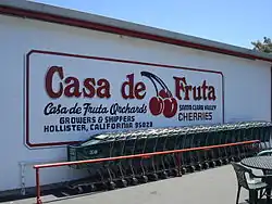 California State Route 152 passed in front of Case de Fruta as a two-lane highway for many years, but was widened to four lanes in 1992.[3] The old alignment of the highway still exists as the Casa de Fruta Parkway, which is accessed via an exit from SR 152.