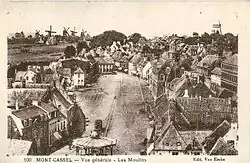 Cassel (French pronunciation: [kasɛl]; Dutch: Kassel) is a commune in the Nord department in northern France.[3] Built on a prominent hill overlooking French Flanders, the town has existed since Roman times. It was developed by the Romans into an important urban centre and was the focus of a network of roads, which are still in use today, that converge on the hill. After the fall of the Roman Empire, Cassel became an important fortified stronghold for the rulers of Flanders which was repeatedly fought over before finally being annexed to France in the 17th century. It was the headquarters of Marshal Ferdinand Foch during part of the First World War. In 1940, during the German invasion of France, Cassel was the scene of a fierce three-day battle between British forces (led in part by Major Ronald Cartland, MP) and German forces which resulted in much of the town being destroyed.