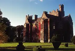 The estate belonged to the de la Poers, an Anglo-Norman family whose affiliation with the Catholic Church led to their eventual expulsion from the Protestant English establishment.[2] Edmund, 1st Count de la Poer, 18th Lord le Poer and Curraghmore, a Knight of Malta and Private Chamberlain to Pope Pius X, commenced the building of the present castle in 1863 to replace an earlier house which itself replaced an earlier house.[3]