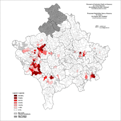 Another 60,000 (according to the 2011 census) Kosovan Catholics are outside the region, mainly for work.[2] They are mainly ethnic Albanians, with a few Croats.