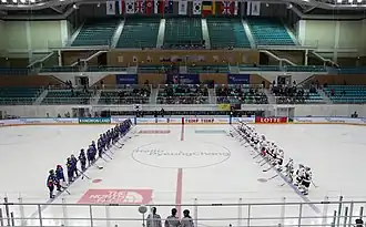 Catholic Kwandong University Gymnasium is located on the grounds of Catholic Kwandong University in Gangneung, Gangwon-do, South Korea. During the 2018 Winter Olympics, it is one of the two venues for Ice Hockey.[1] The official name as the Winter Olympic venue is Kwandong Hockey Centre (Korean: 관동 하키 센터, romanized: Gwandong Haki Senteo).