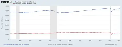 - ^ "FRED Database-Full Time and Part Time Workers-Retrieved June 2013".