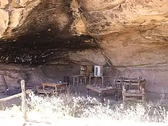 Cave Springs Cowboy Camp was a line camp operated by the Scorup-Sommerville Cattle Company in what would become Canyonlands National Park, Utah. The site consists of a cave-like shelter under a rock overhang on the side of a small canyon. The canyon was arranged with a fence across the opening that allowed its use as a cattle pen. The site contains a great deal of material that was abandoned as the site became disused. The shelter was used from the late 1890s through the late 1960s when the park was established.[2]