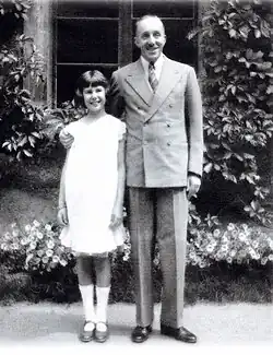She was baptized on 17 April 1926 in the Royal Chapel, her godparents being King Alfonso XIII and his wife, Queen Victoria Eugenia.[3] For her baptism, the baptismal font of Santo Domingo de Guzmán was brought, which is only used to baptize monarchs or their descendants.[4]