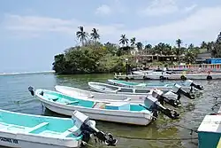 Tourist attractions in the municipality are related to its shoreline and includes beaches such as Playa Azul, Playa Boquitas, Playa Sur, and Playa Chaparrales, as well as the Cazones River.[2] The best known area is Barra de Cazones, where almost all of the municipality’s hotels are.[8] The community centers on the main boardwalk and docks which were built by the state in 2006. The Cazones lighthouse was built in the 1970s to guide small vessels such as fishing boats.[5] Farallón is a small island located at the mouth of the Cazones River about half a kilometer from the ocean. In the colonial period, it was a refuge for pirates. One side of the island has a cliff called “El Chivo” eighteen meters high, which is popular for rappelling.[5][3] The island is home to a species of black iguana called “garrobo negro.” Playa Sur is the best known beach because of its hotels and other tourist infrastructure.[3]