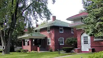 The Cedar Crest Addition Historic District is a residential subdivision and historic district in Normal, Illinois. The subdivision is bounded roughly by Division Street to the south, Highland Avenue to the north, Fell Avenue to the west, and a local recreation trail, the Constitution Trail, to the east. Developed from 1914 to 1930, Cedar Crest Addition was the first large planned subdivision in Normal. Prior to its construction, Normal lacked paved streets and townwide electrical, sewer, and water systems and was considered more a rural area than a proper suburb of Bloomington. Planner Burt Marley Kuhn and architect Aaron T. Simmons planned the subdivision to be more developed and organized; in particular, it featured tree-lined curvilinear streets inspired by the City Beautiful movement. Simmons designed many of the houses in the district in the then-popular American Craftsman style, another modern addition to Normal. The subdivision gave Normal a much more modern reputation, and a local historian called it "one of the most important additions ever made to Normal" in the 1920s.[2]